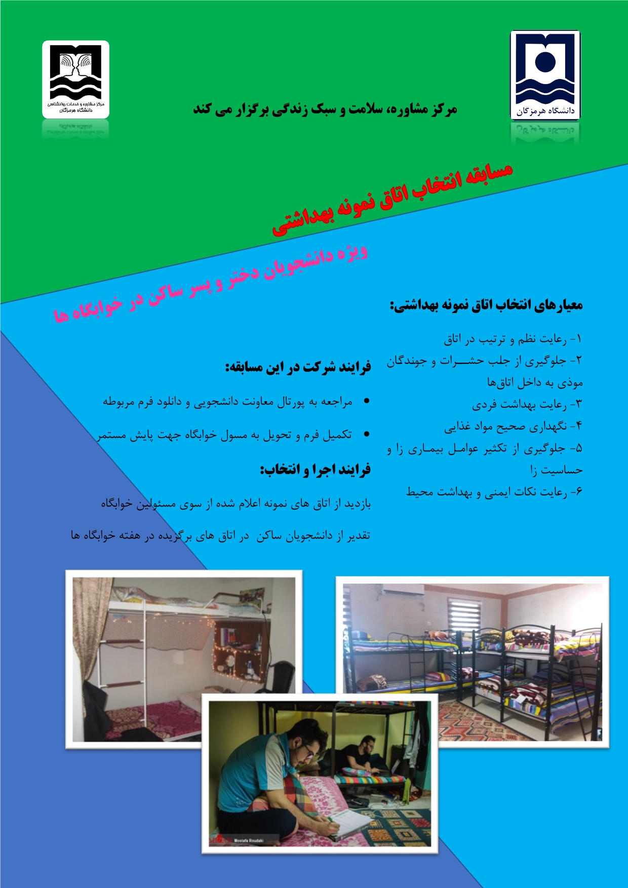 مرکز مشاوره، سلامت و سبک زندگی برگزار می کند. مسابقه انتخاب اتاق نمونه بهداشتی