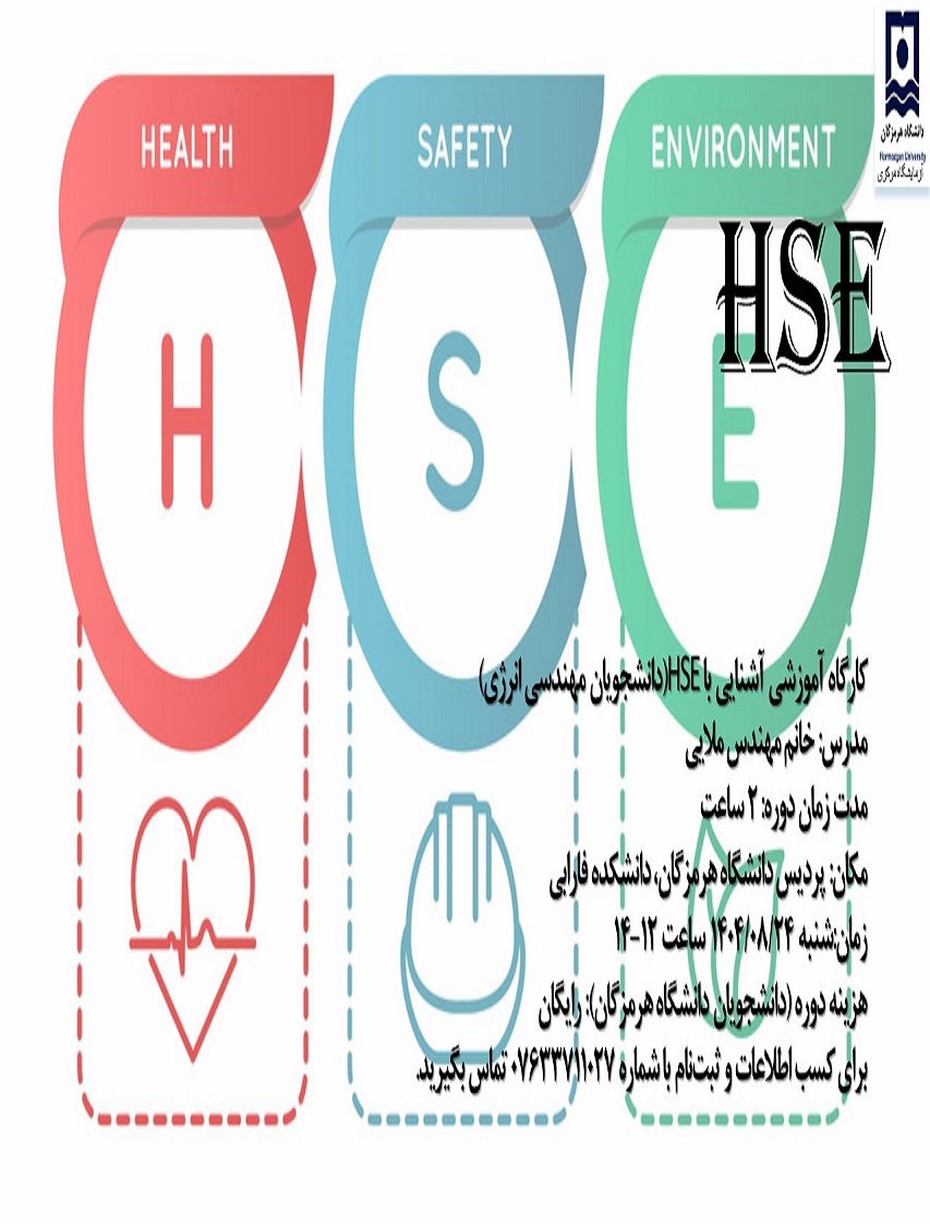 در ادامه سلسله کارگاههای آموزشی ایمنی، آزمایشگاه مرکزی دانشگاه هرمزگان دوره HSE (ایمنی، بهداشت و محیطزیست) را این بار ویژه دانشجویان جدیدالورود رشته مهندسی انرژی برگزار میکند.
