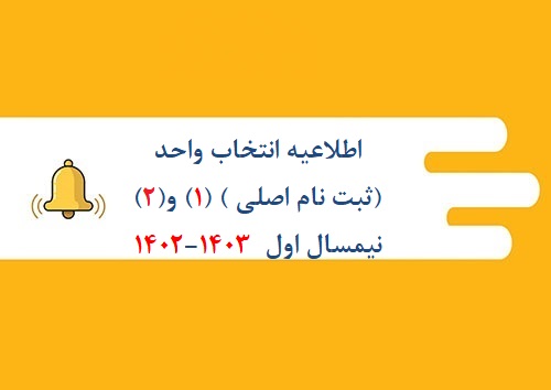 اطلاعیه انتخاب واحد (ثبت نام اصلی ) (1) و (2) نیمسال اول 1403-1402