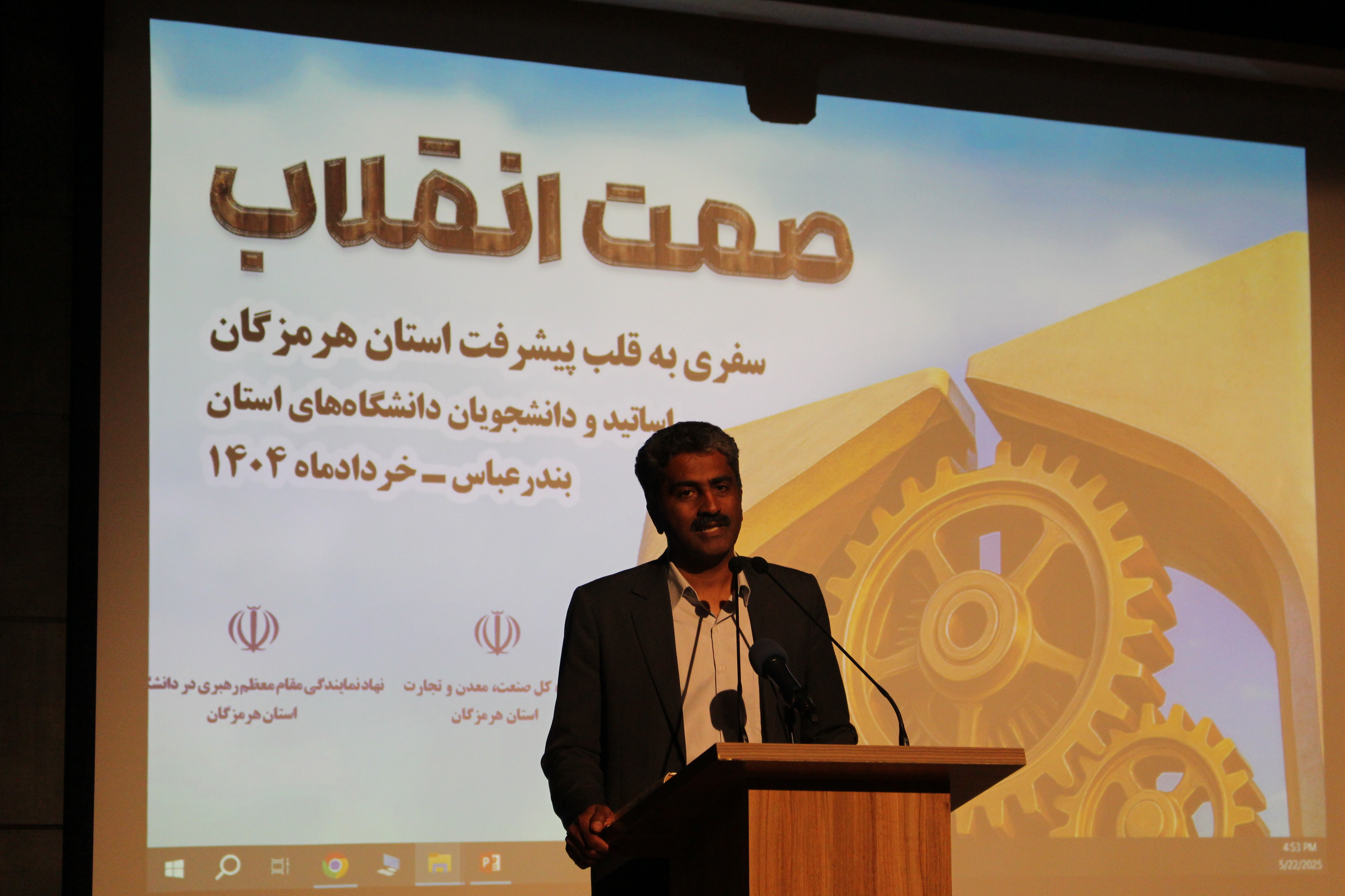 این برنامه صبح روز پنجشنبه یکم خردادماه، با نشست توجیهی در مسجد امام رضا (ع) پردیس دانشگاه علوم پزشکی هرمزگان آغاز شد. در این مراسم، حجتالاسلام والمسلمین تقوی، رئیس نهاد نمایندگی مقام معظم رهبری در دانشگاههای استان به تشریح اهداف بازدید و اهمیت آشنایی دانشگاهیان با ظرفیتهای صنعتی استان پرداخت.
