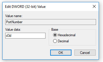 3-عدد 3389 موجود رو تغییر بدید به عدد دلخواه خودتون ، در انجا ممکن است که به جای 3389 بصورت d3d نمایش داده باشد. فقط توجه داشته باشید که با شماره پورت های دیگر تداخلی نداشته باشه ، ترجیحا Well Known Ports نباشد.