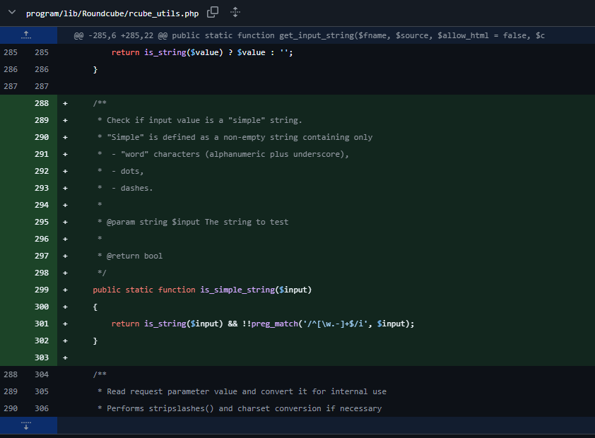 همچنین در program/lib/Roundcube/rcube_utils.php نیز تغییرات زیر صورت پذیرد