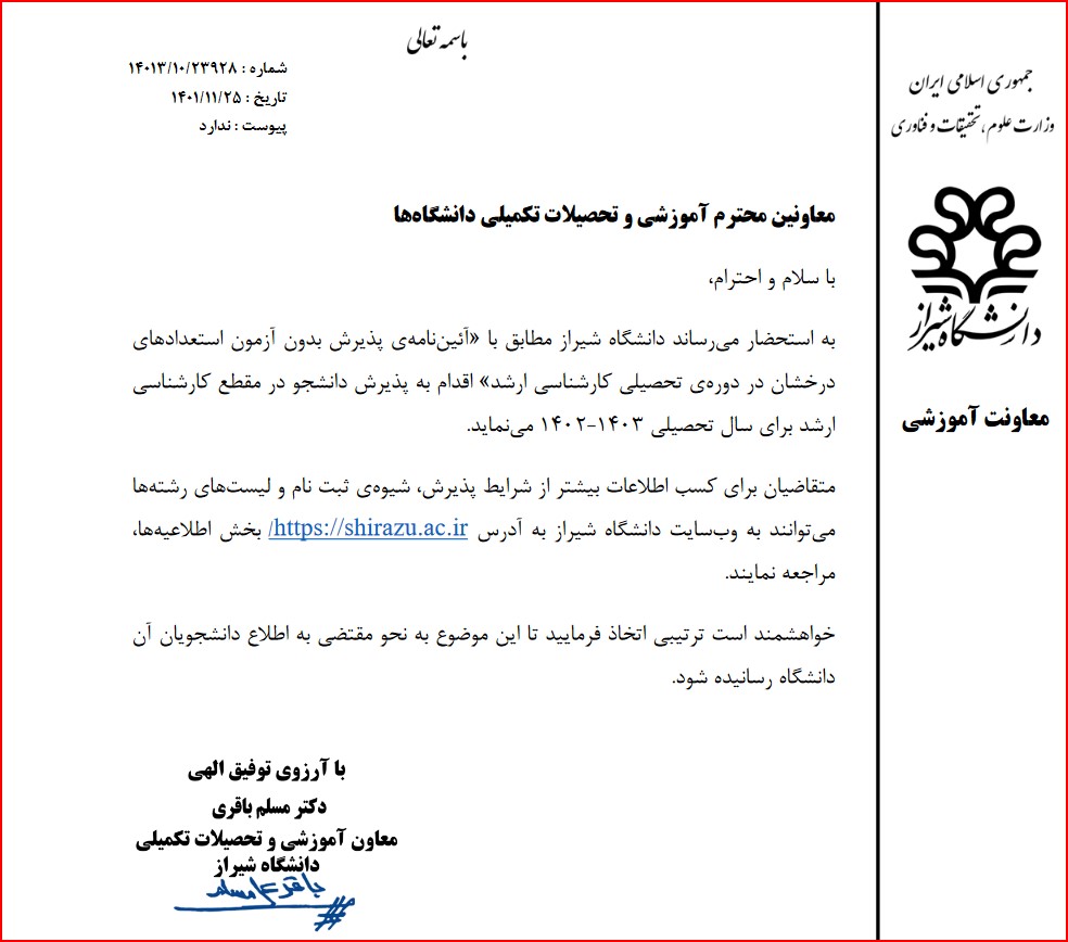 فراخوان استعداد های درخشان دانشگاه شیراز