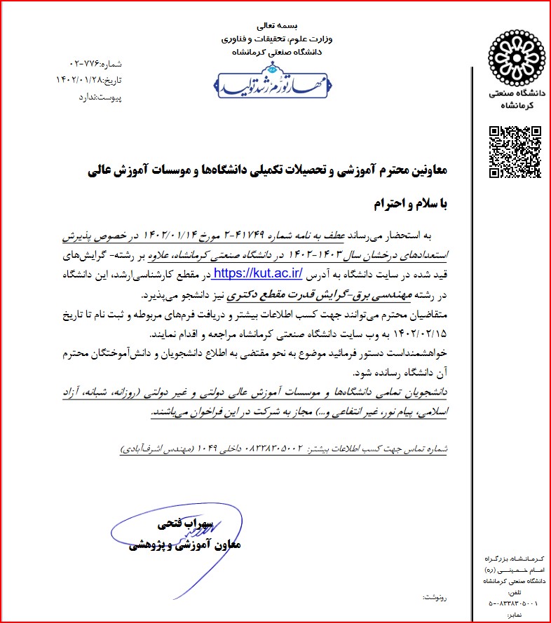 فراخوان جذب استعداد های درخشان دانشگاه کرمانشاه