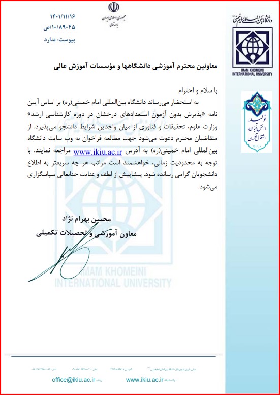 فراخوان استعداد های درخشان دانشگاه بین المللی امام خمینی