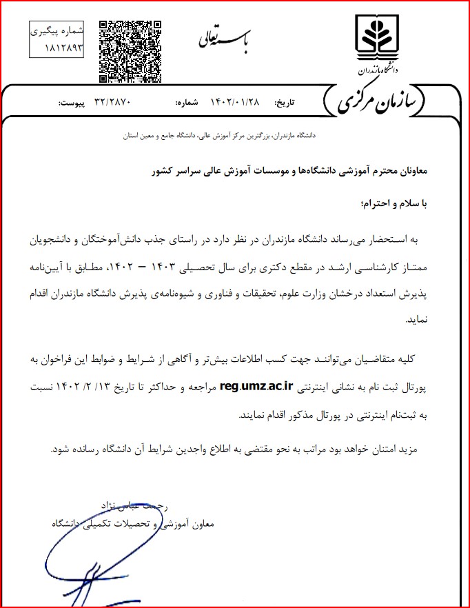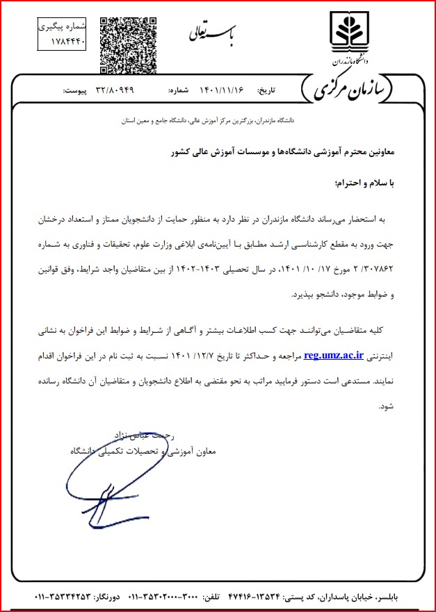 فراخوان استعداد های درخشان دانشگاه مازندران