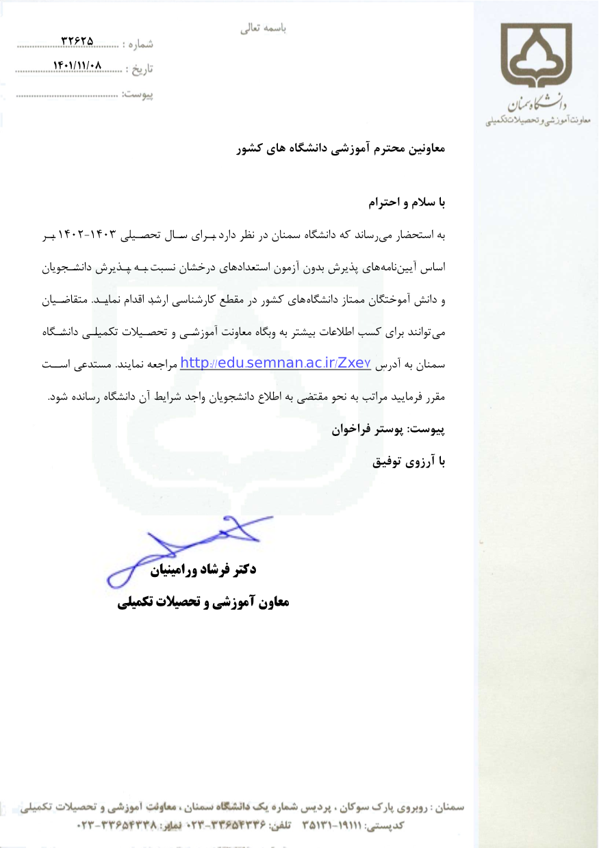 فراخوان استعداد های درخشان دانشگاه سمنان
