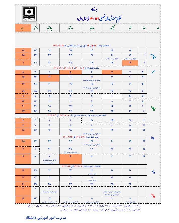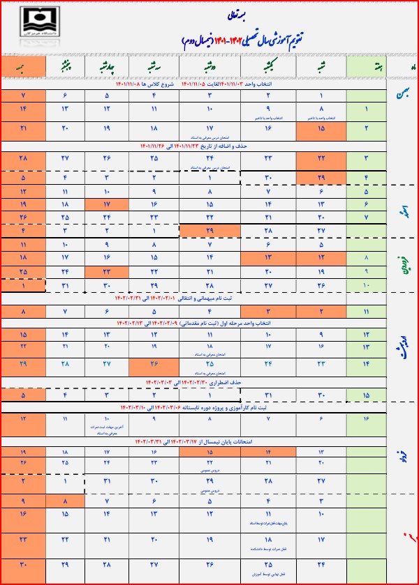 تقویم اموزشی نیمسال 4011