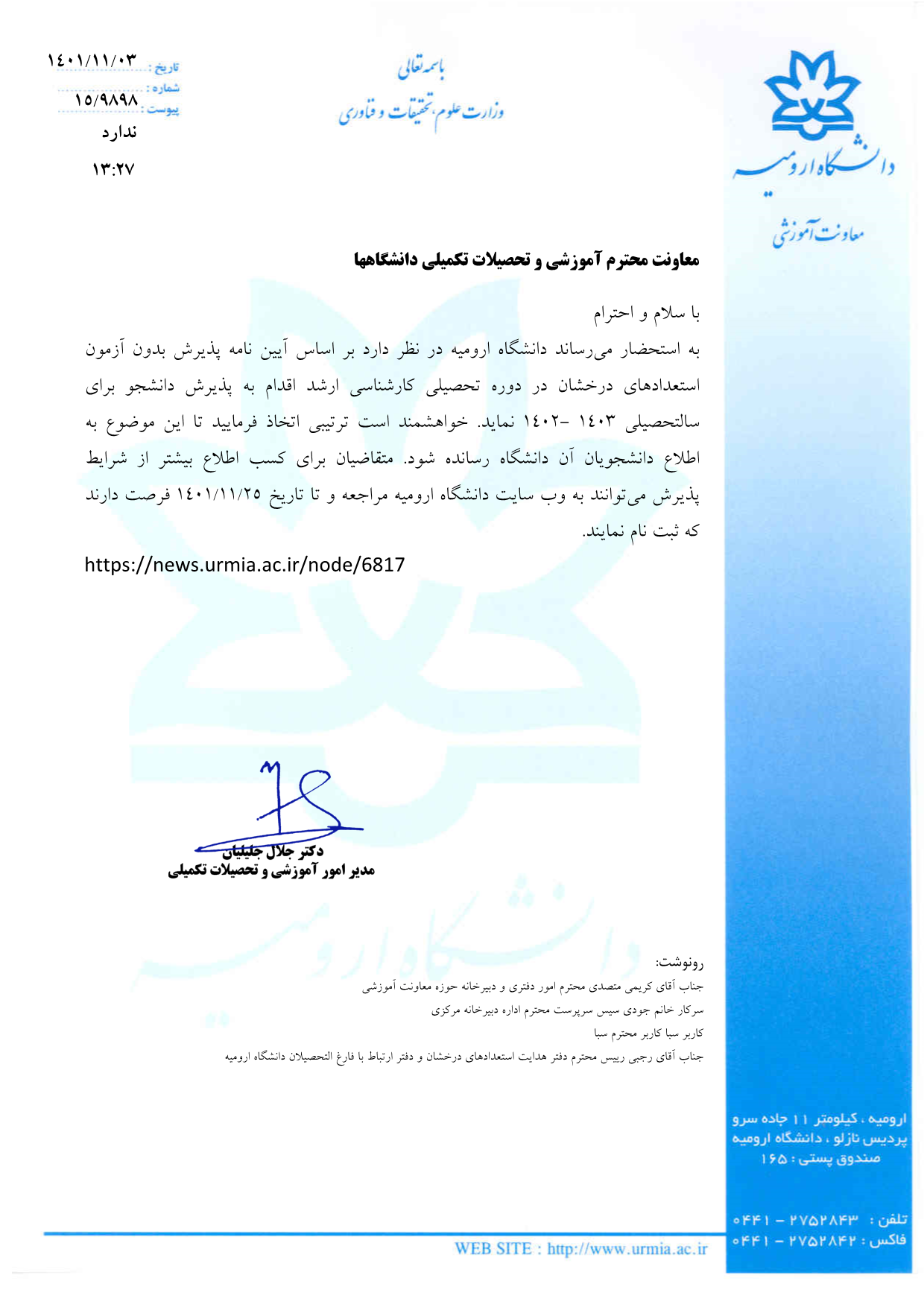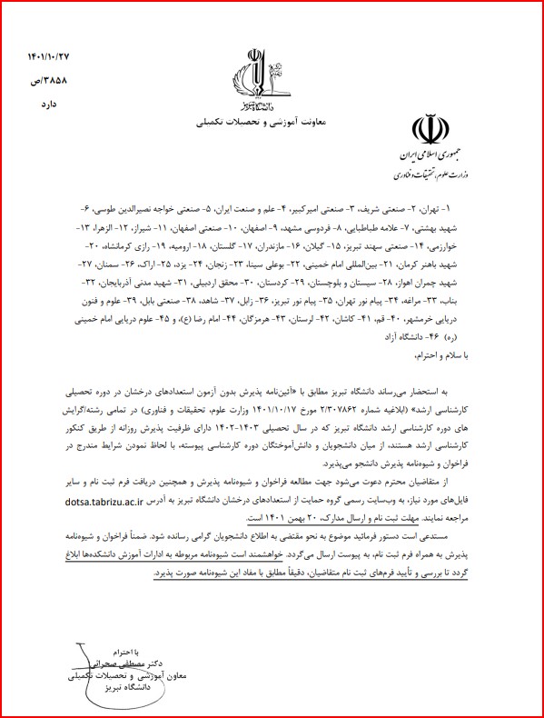 فراخوان جذب استعداد های درخشان دانشگاه ارومیه