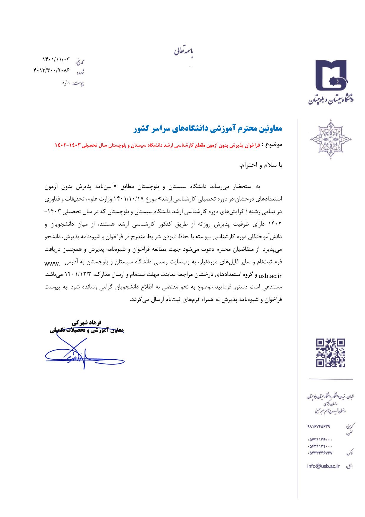 فراخوان جذب استعداد های درخشان دانشگاه سیستان وبلوچستان
