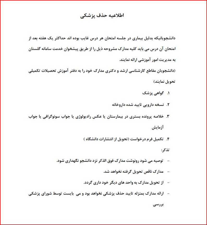 آیین نامه حذف پزشکی امتحان