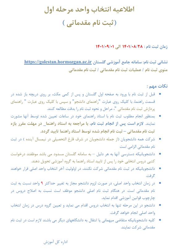 اطلاعیه ثبت نام مقدماتی