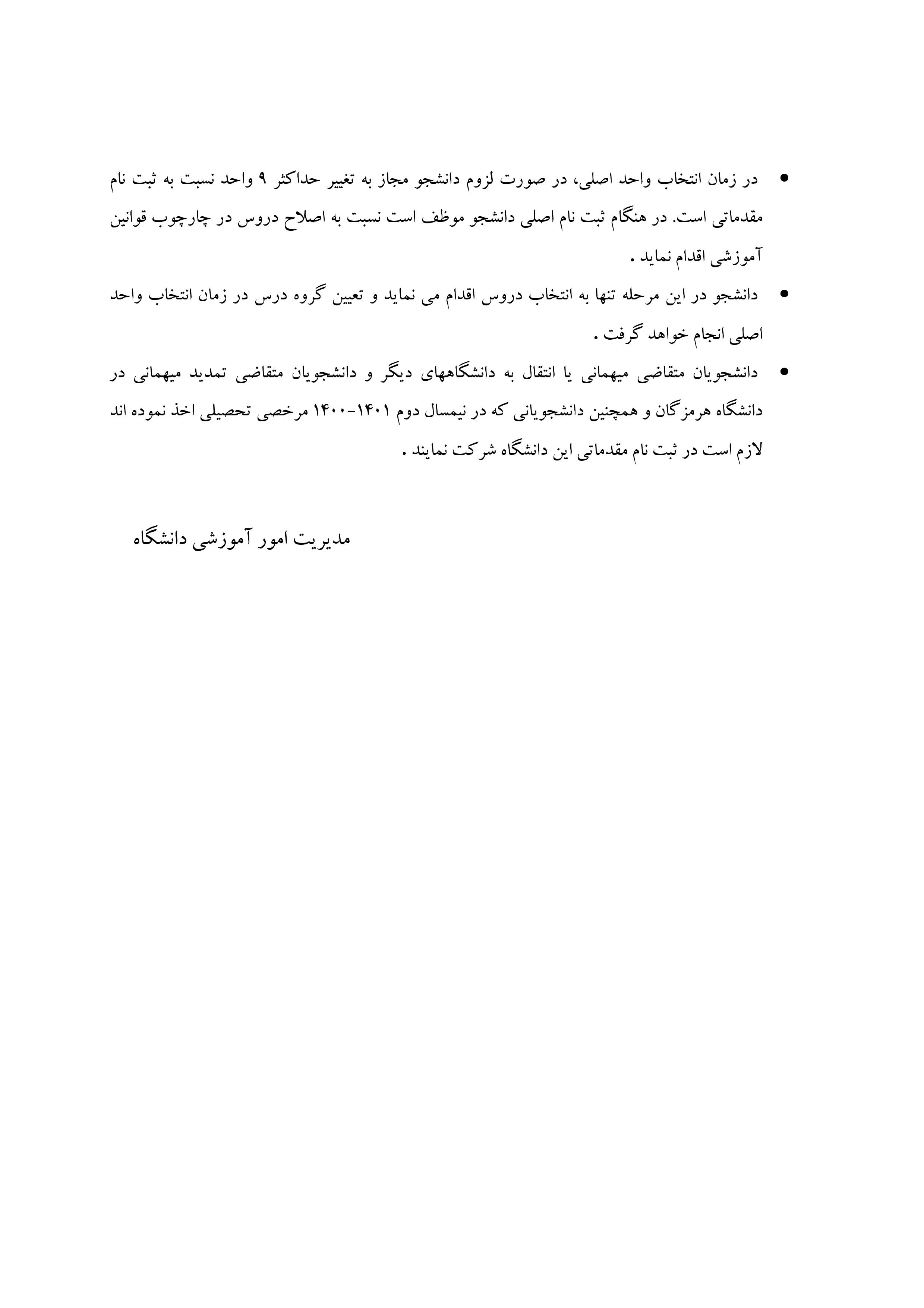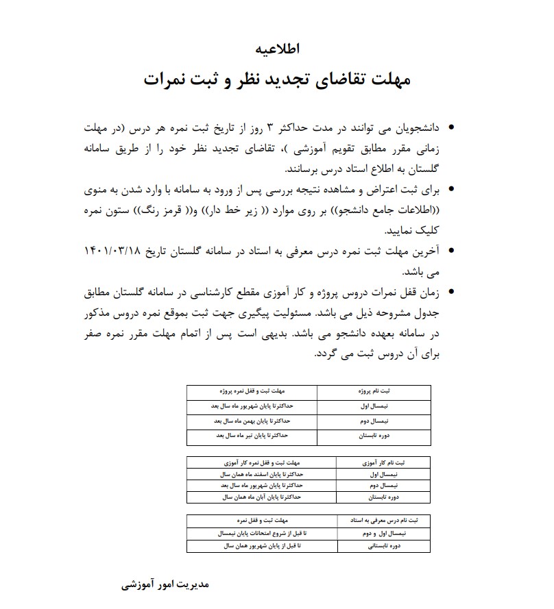 ثبت نام پروژه و کارآموزی تابستان1401-1400