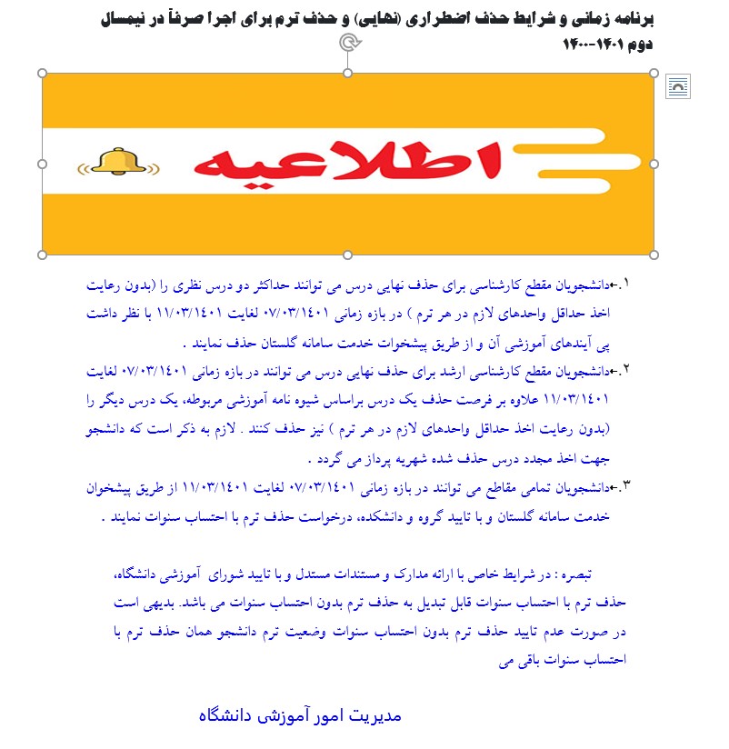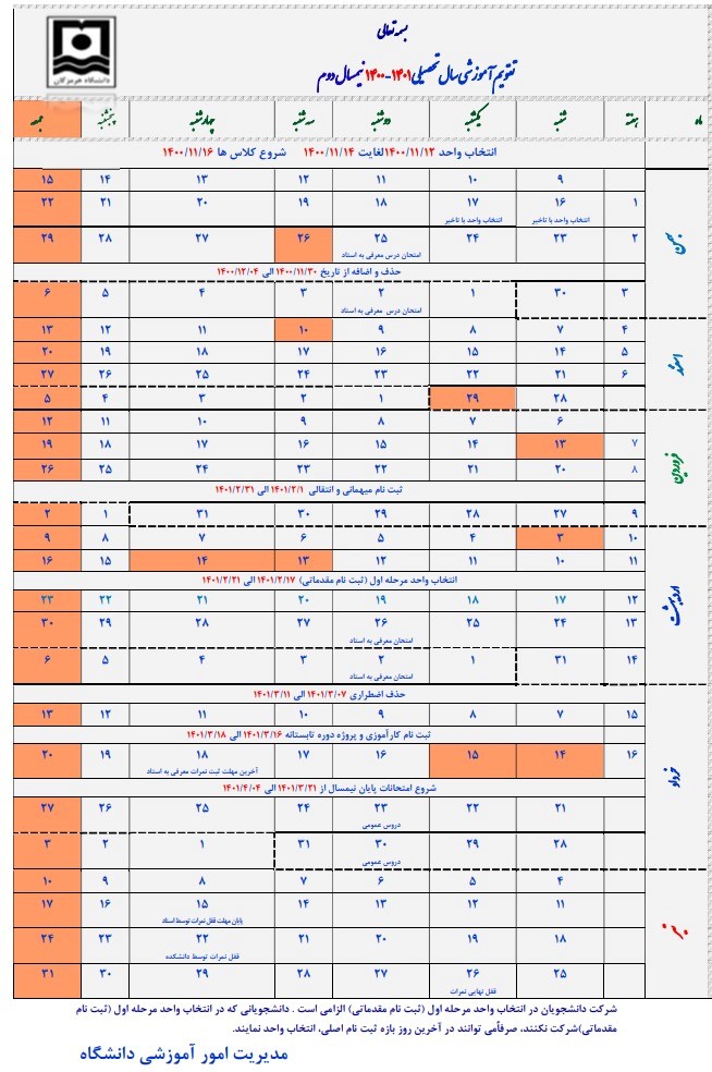 تقویم اموزشی دفاع دانشجویان دوره های ارشد و دکتری 1400