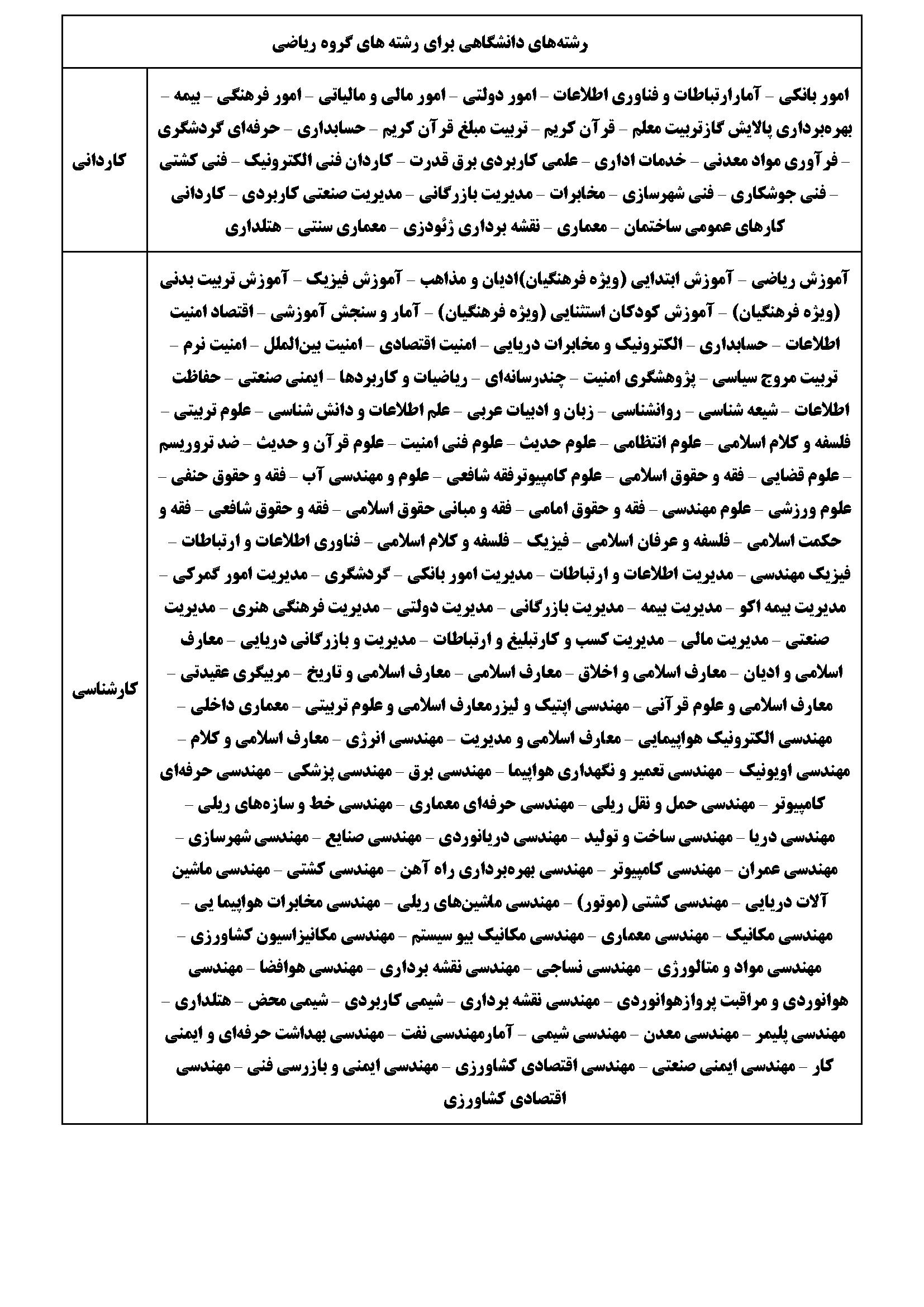 رشته های دانشگاهی گروه ریاضی