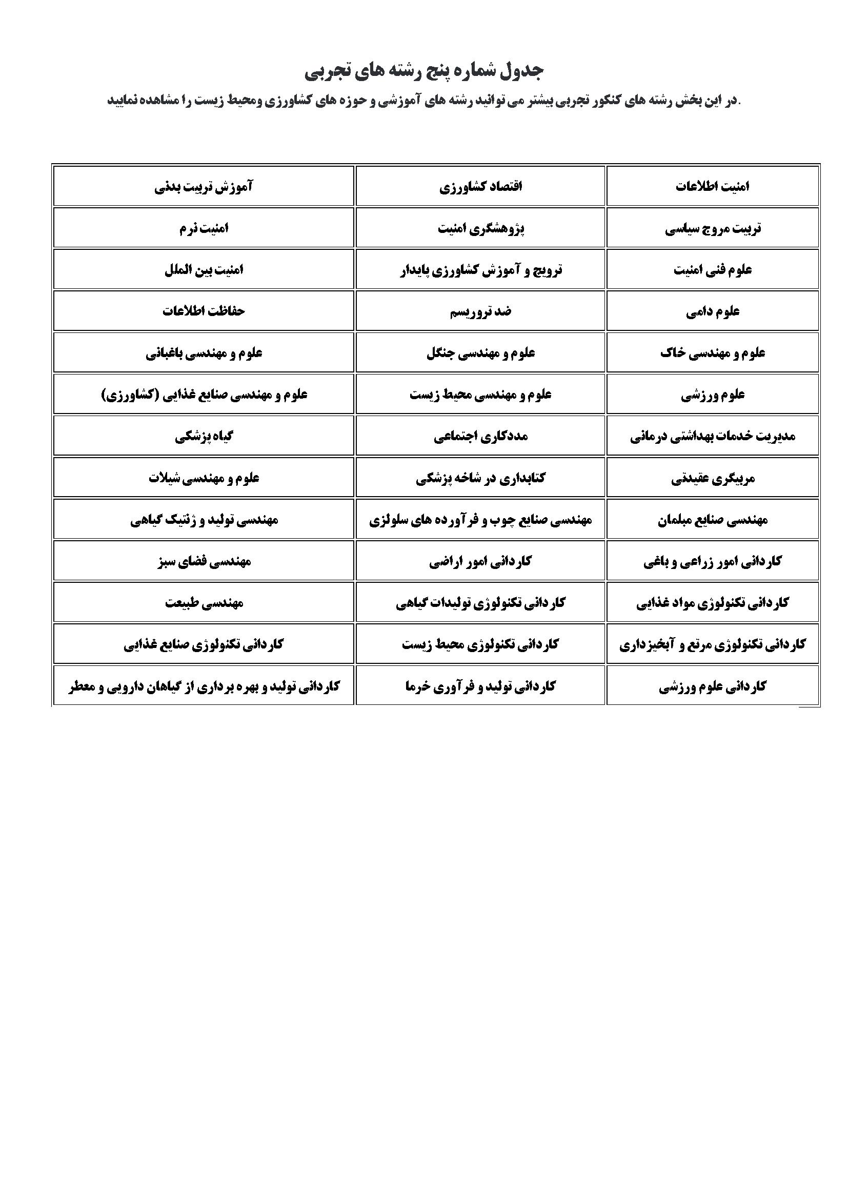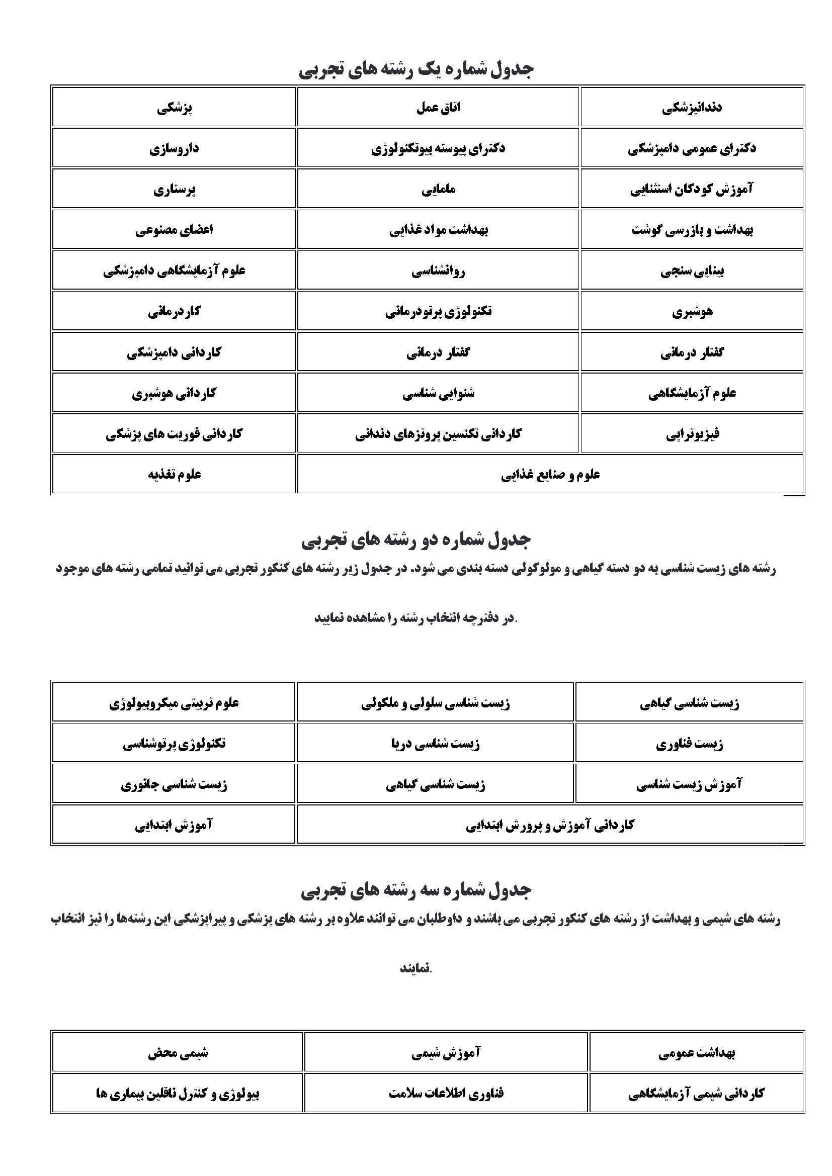 رشته های گروه تجربی