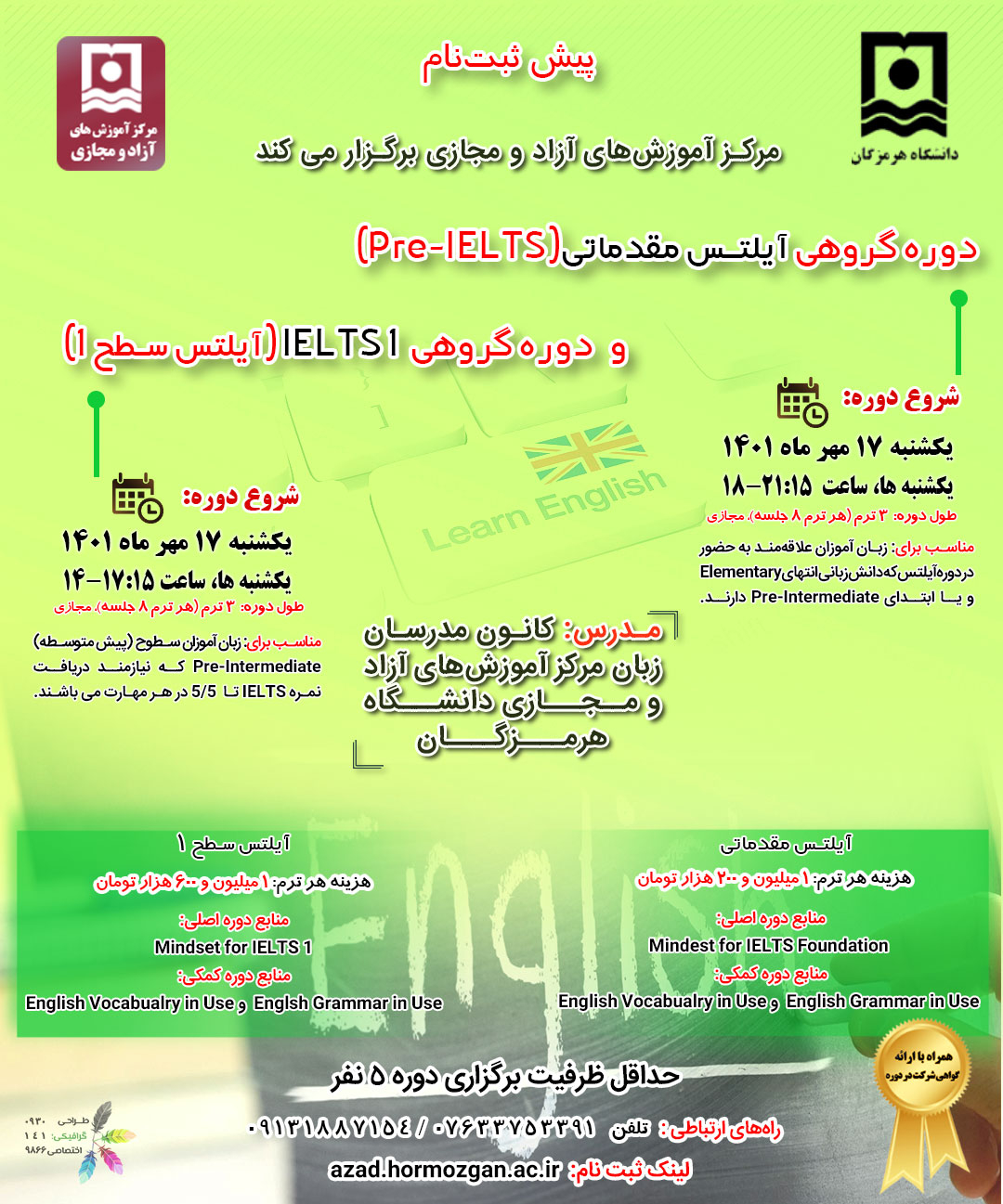 برگزاری دوره گروهی آیلتس مقدماتی و آیلتس سطح 1