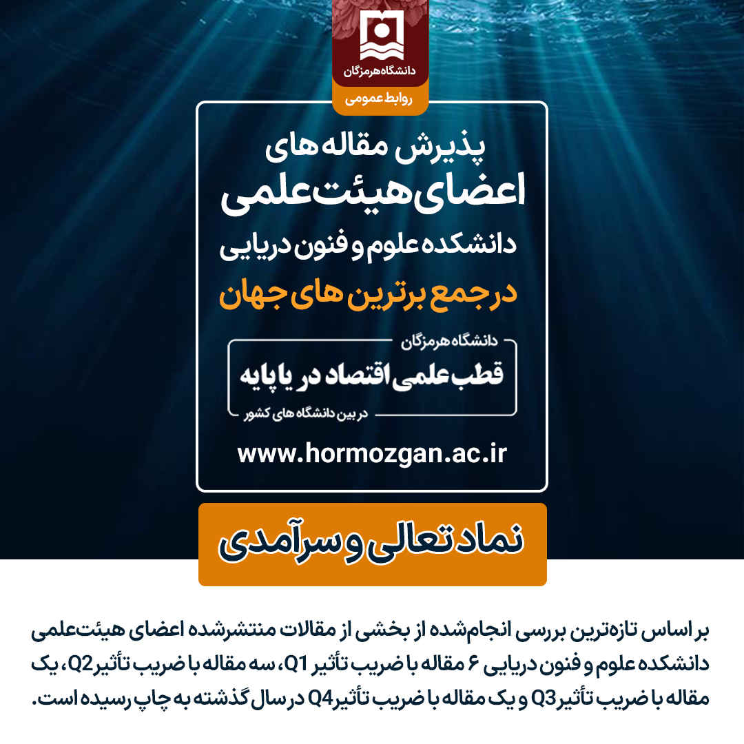پذیرش مقاله های اعضای هیات علمی دانشکده علوم و فنون دریایی در جمع برترین های جهان