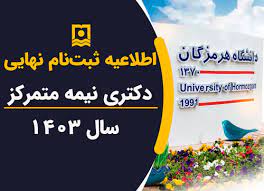 طلاعیه ثبت نام از پذیرفته‌شدگان‌ نهایی آزمون‌ ورودی‌ دوره دكتری نیمه‌متمركز سال 1403