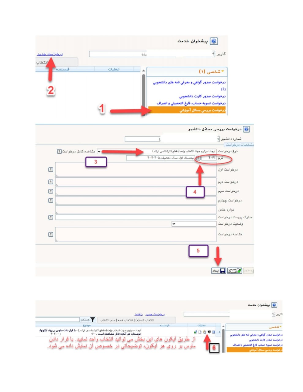 راهنمای فرایند ایجاد سرترم و انتخاب واحد دانشجویان کارشناسی ارشد ورودی سال 1402