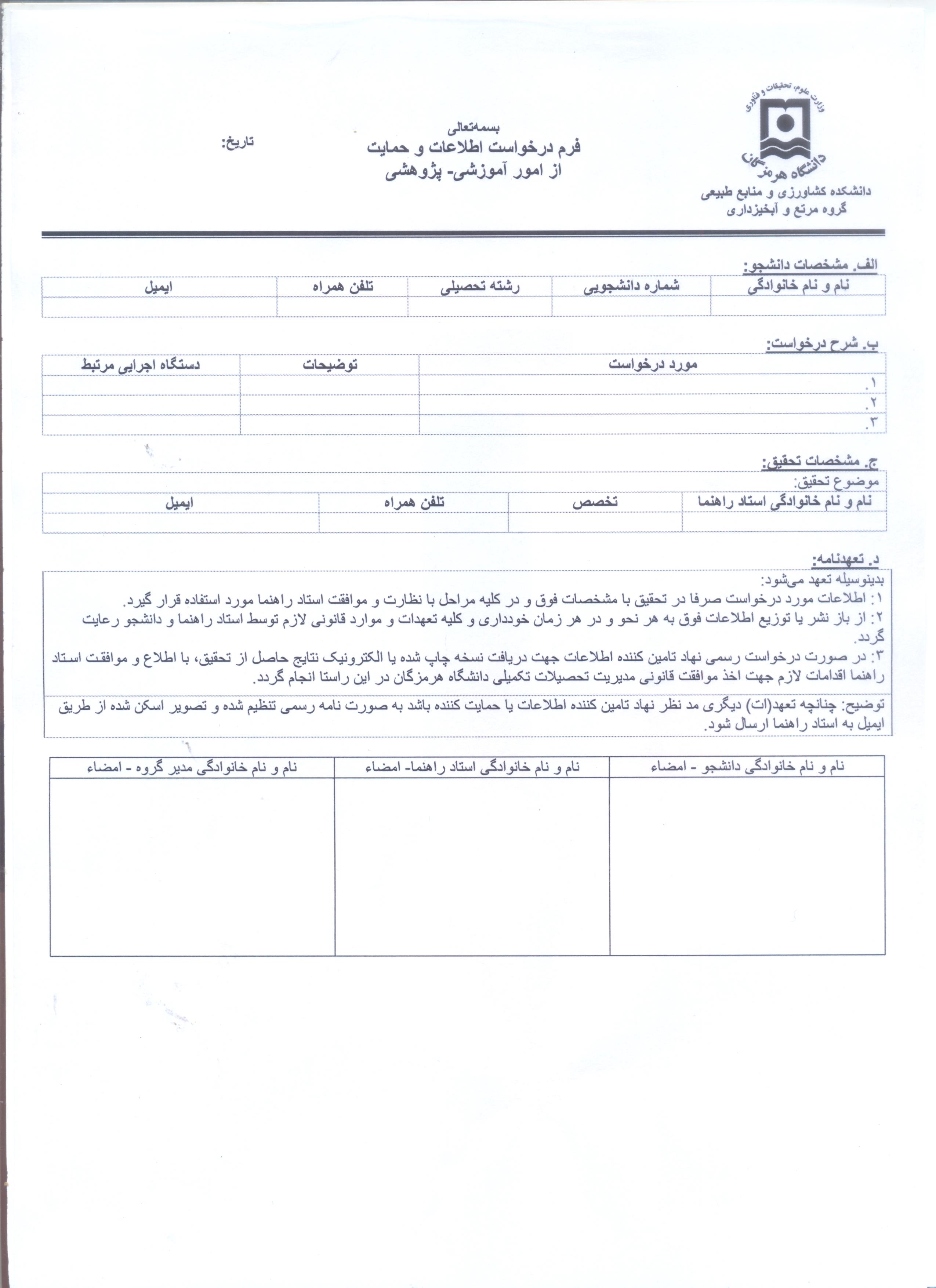 فرم درخواست داده از ادارات خارج ازدانشگاه(2047)
