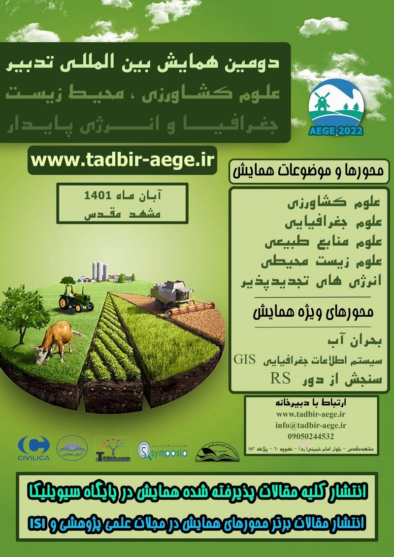 دومین همایش بین المللی تدبیر علوم کشاورزی، محیط زیست، جغرافیا و انرژی پایدار