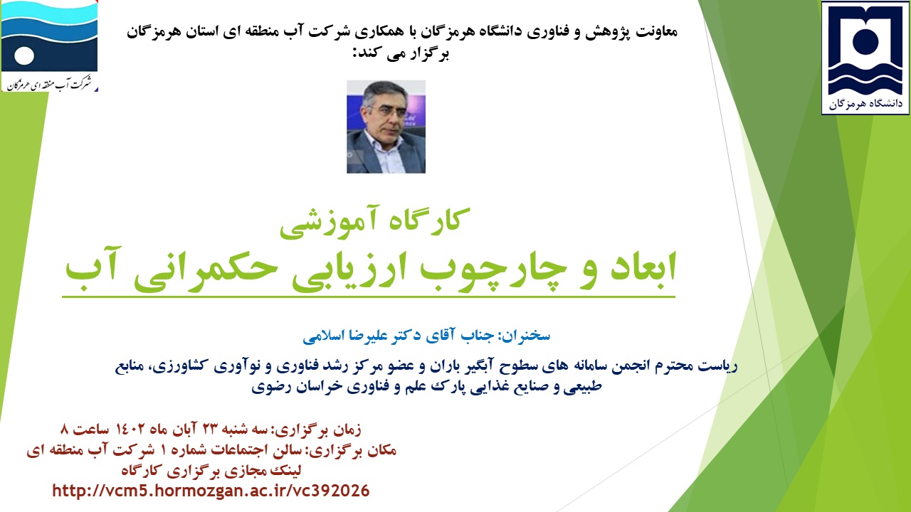 کارگاه آموزشی ابعاد و چارچوب ارزیابی حکمرانی آب