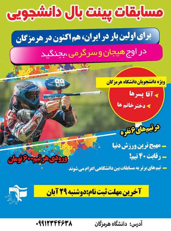 مسابقات پینت بال دانشجویی برای اولین بار در ایران ، هم اکنون در دانشگاه هرمزگان