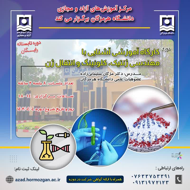 کارگاه آموزشی آشنایی با مهندسی ژنتیک،کلونینگ و انتقال ژن