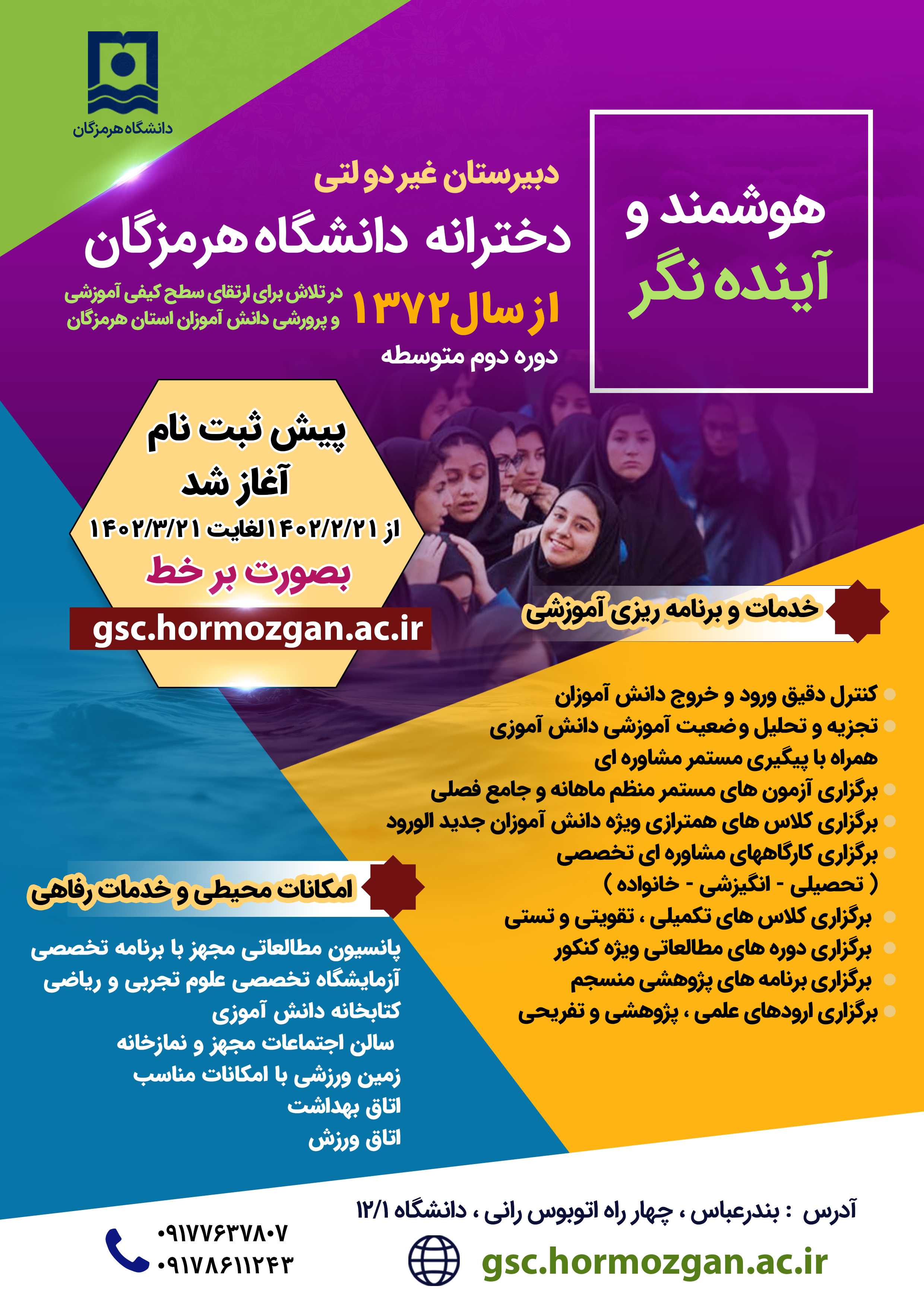 ثبت نام دبیرستان دخترانه دانشگاه آغاز شد